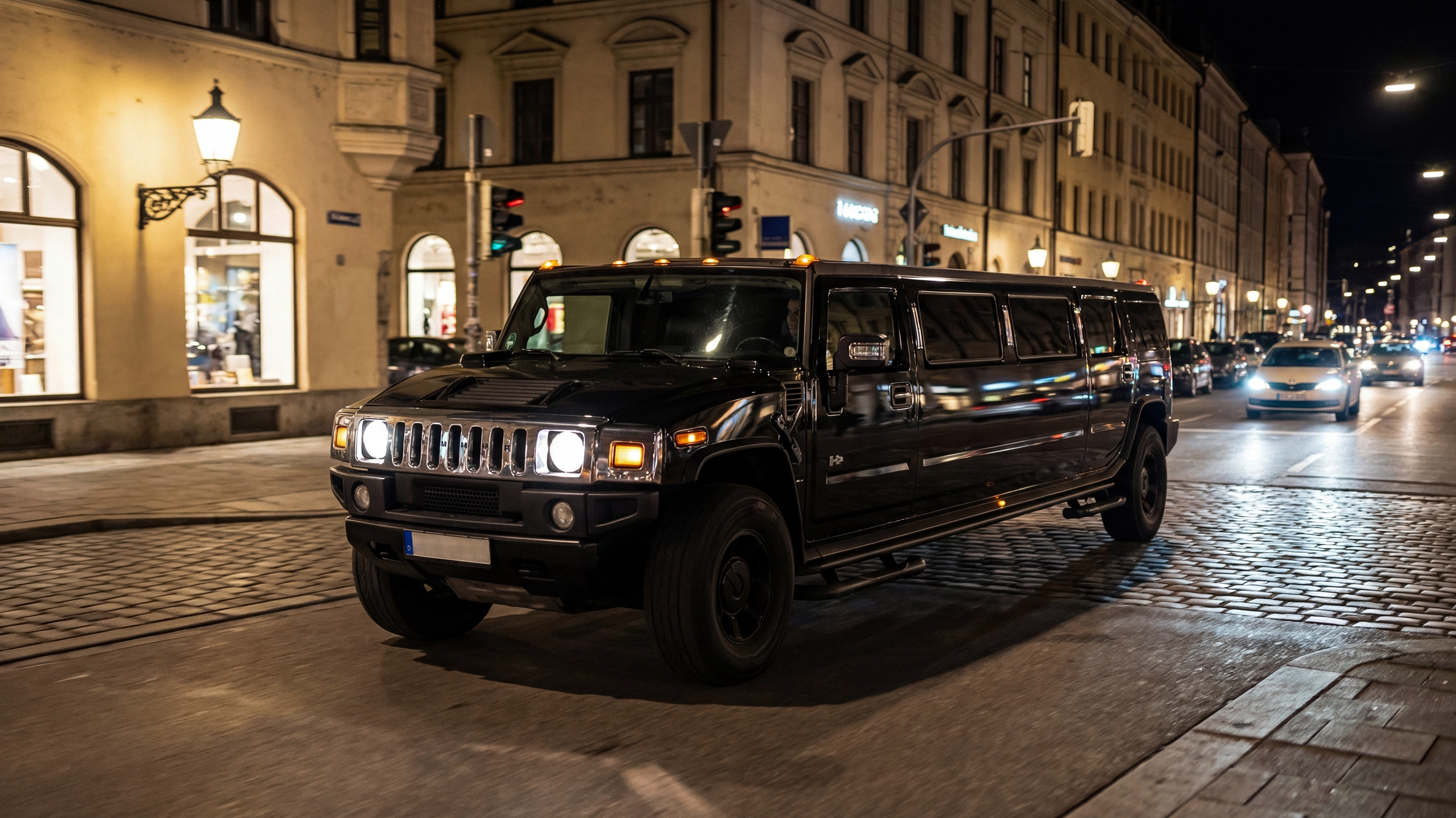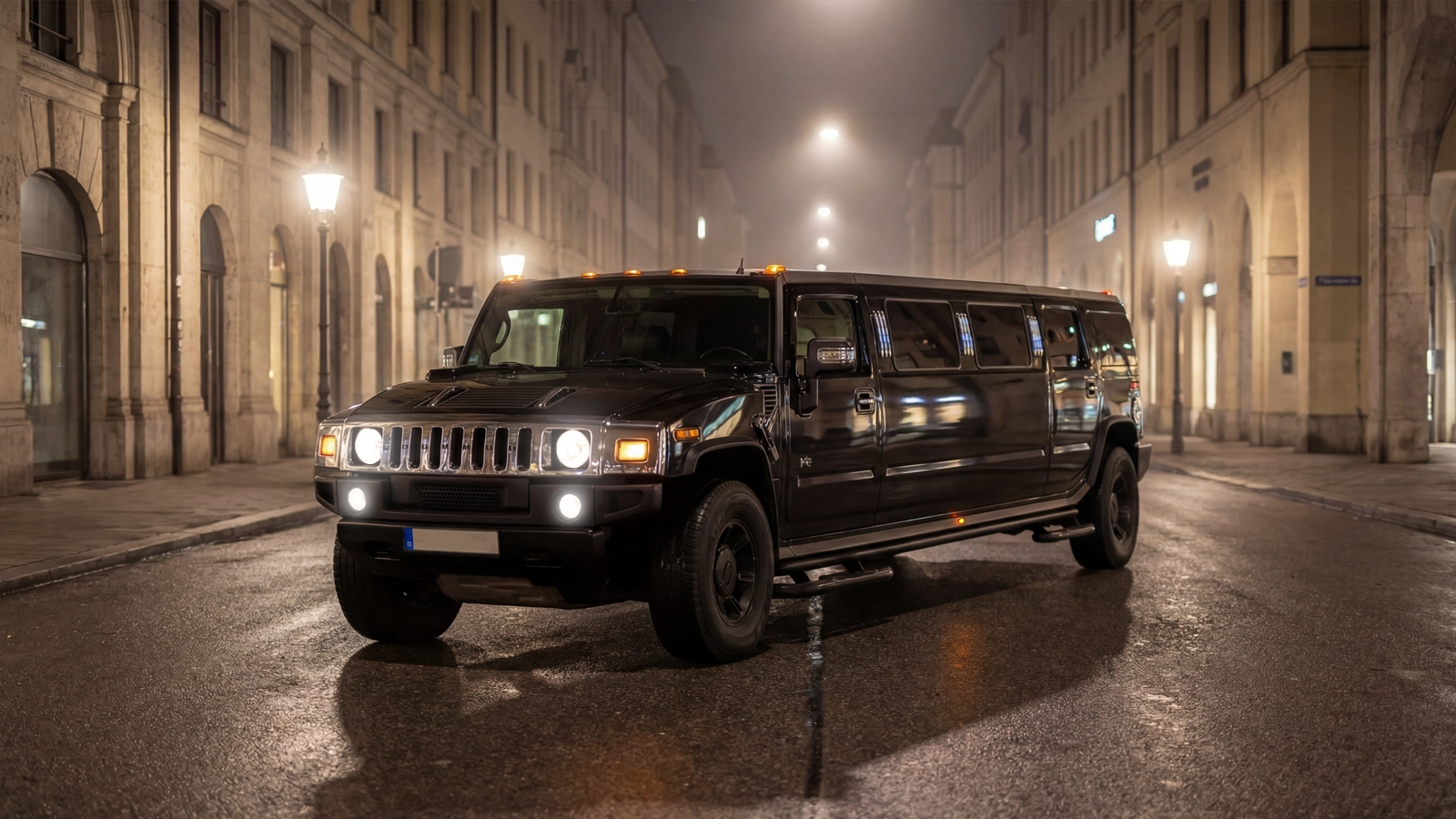 Die schwarze Hummer H2 Stretch-Limousine steht für maximalen Auftritt, Luxus und Präsenz. Ideal für Events, VIP-Transfers und besondere Anlässe in München – mit Chauffeur und Platz für bis zu 8 Personen.