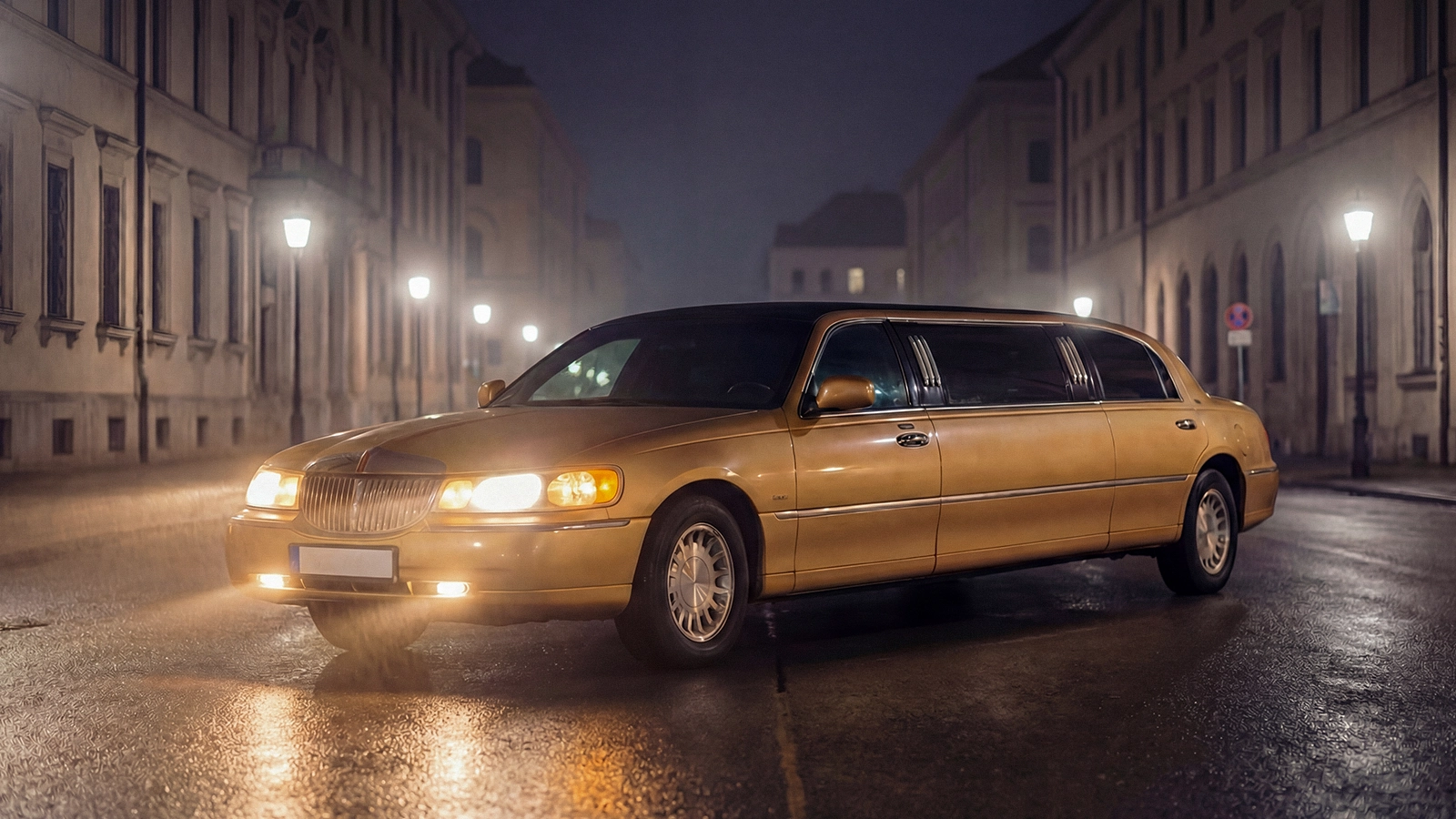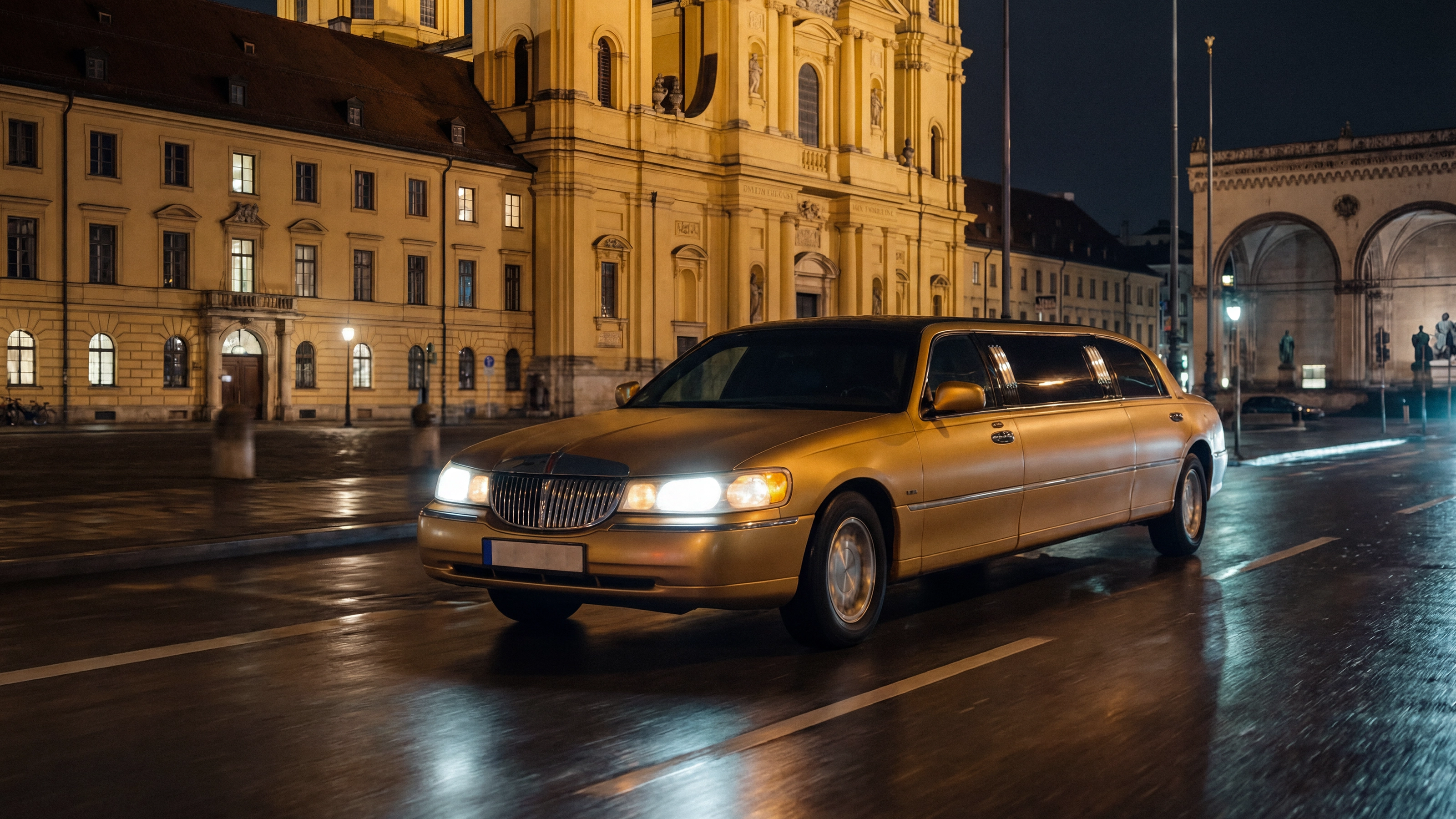 Die goldene Lincoln Town Car Stretch-Limousine ist ein echter Hingucker für Hochzeiten, Events und exklusive Fahrten in München. Luxuriös, auffällig und mit Chauffeur – für bis zu 8 Personen.